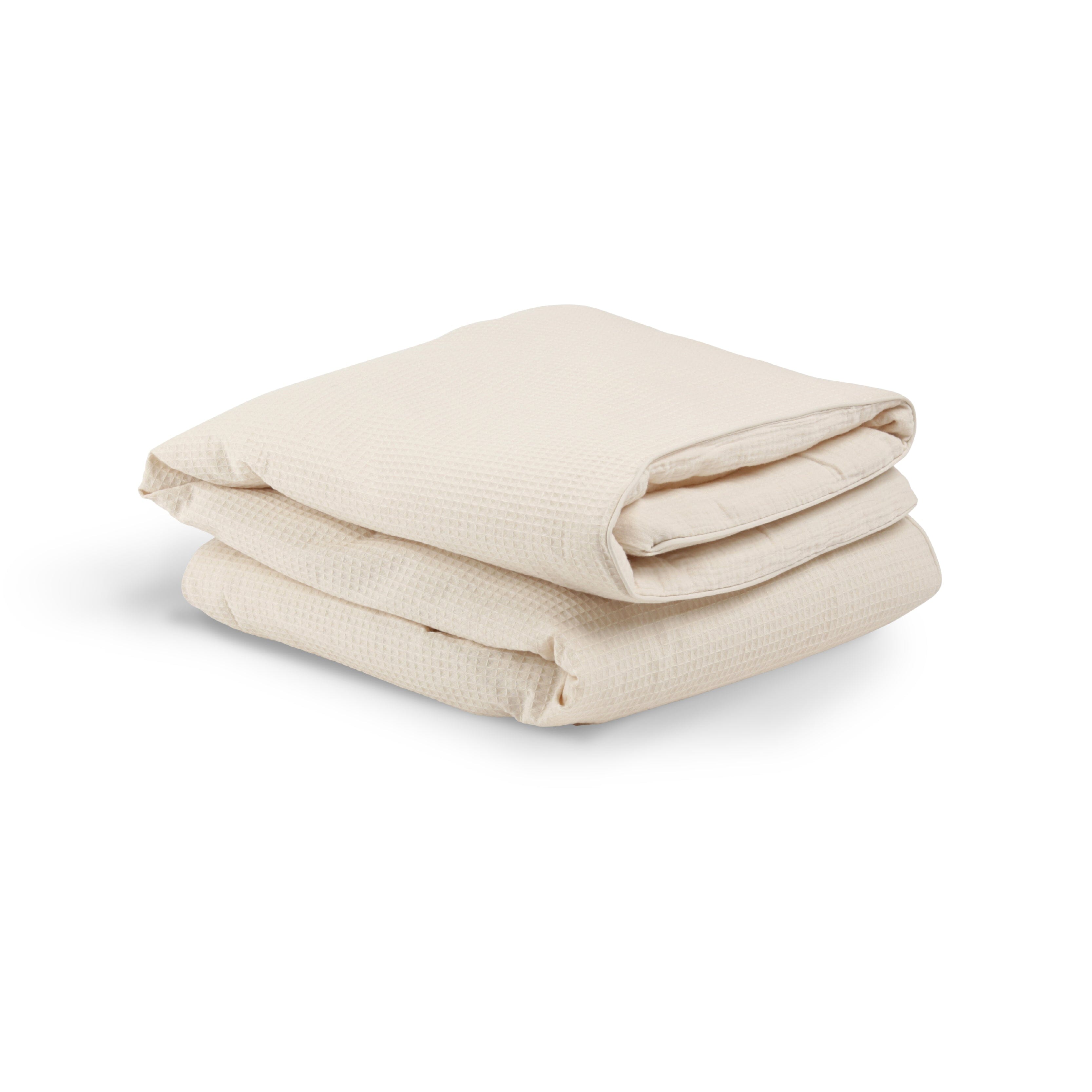 Create a cosy sleep space with our waffle cot bed quilt. Made with breathable cotton, this toddler-friendly duvet is soft on delicate skin and perfect for snuggly nights. A subtle piped edge adds a luxurious finishing touch, while the reversible design gives you the freedom to switch up your nursery look. Pair with our coordinating fitted sheets or layer with the Cashmere Meadow print for extra texture and charm.