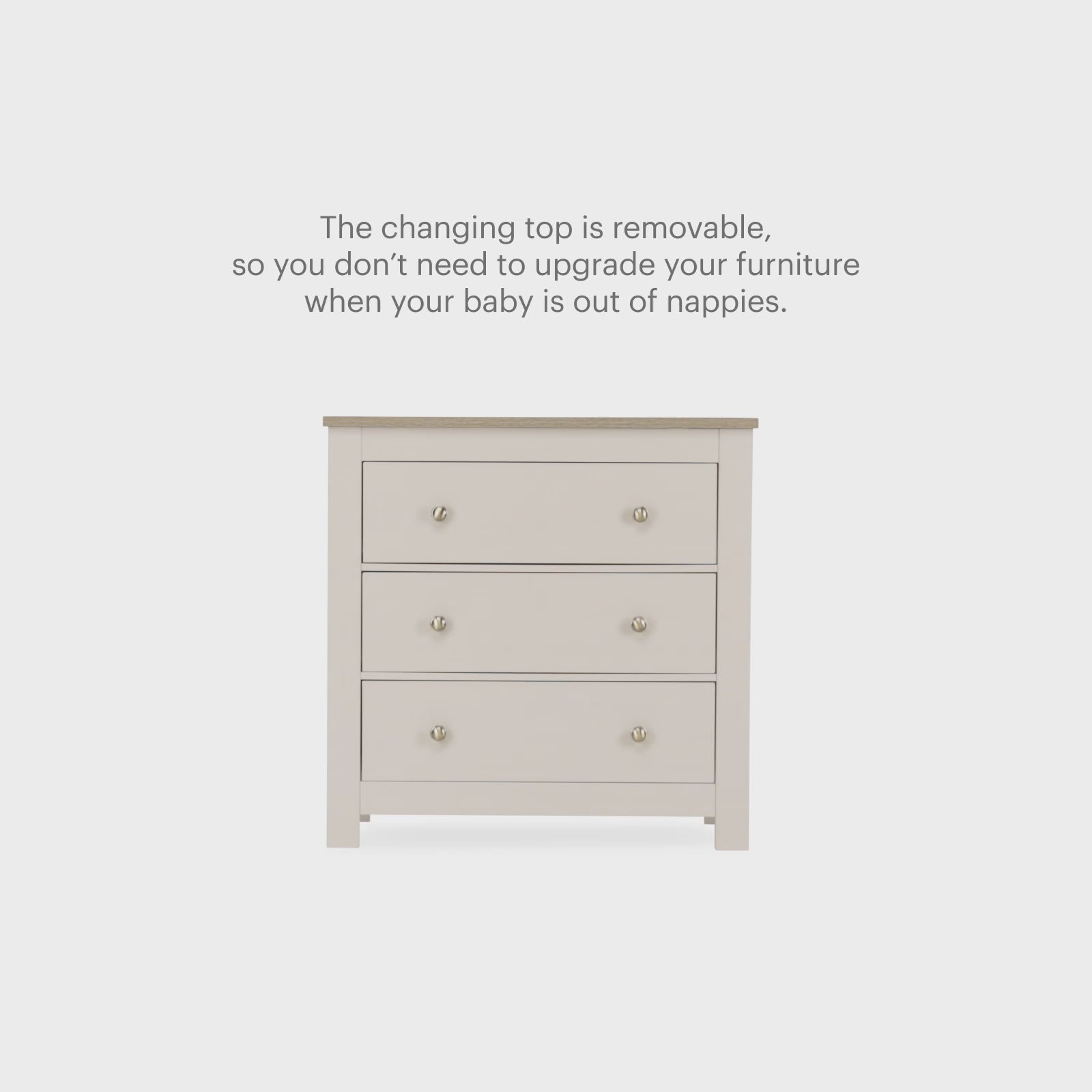With three spacious drawers, it keeps baby essentials neatly stored and close to hand during nappy changes. The removable changing top allows the piece to adapt as your child grows, transforming into a stylish chest of drawers that lasts well beyond the baby stage.
